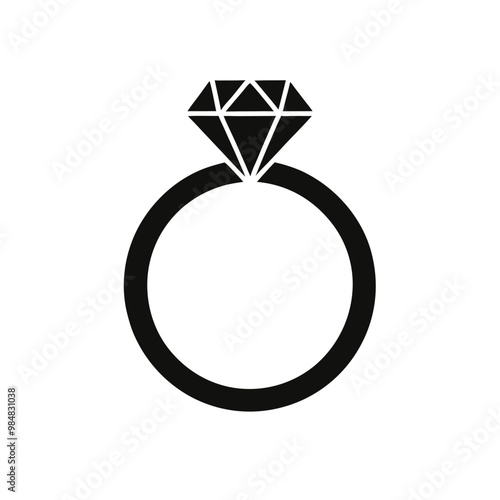 a wedding ring or diamond ring vector silhouette, isolated white background,