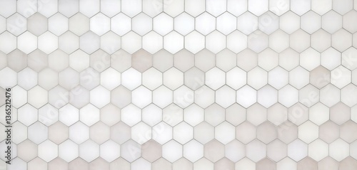 A white background with hexagonal tiles, creating an elegant and minimalist pattern. The soft lighting accentuates the texture of each tile for a sophisticated look.