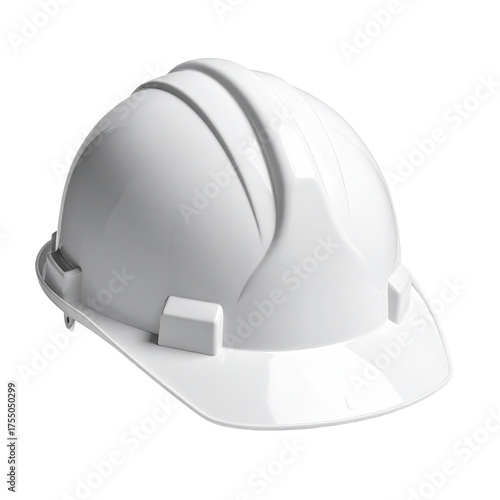 A white, glossy hard hat, slightly angled, on a transparent background