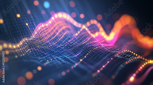 A wide-angle view of a 3D line graph with multiple data series, showing curves and intersections in a dynamic and detailed digital presentation.