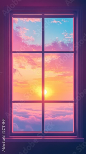 A Window Framing A Beautiful Sunset Over Fluffy Clouds