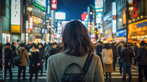 A woman at Shibuya Street at Night