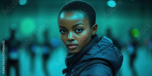 A woman with a black jacket