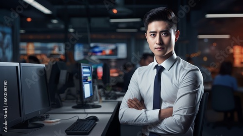 A young businessman with a confident pose. Generative AI.