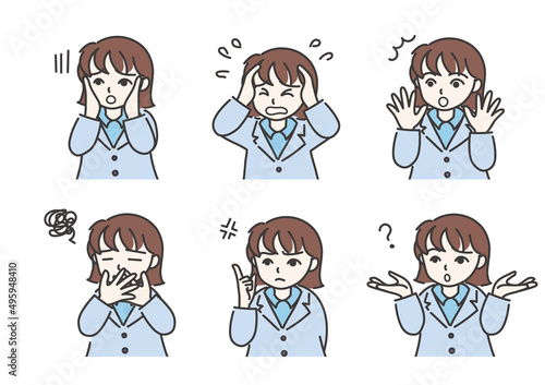 様々な表情を見せる若い女性のイラストセット_A02【カラー/リボンなし】