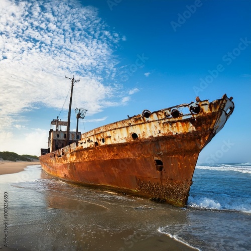 abandoned ship, rusted and shored, AI generated