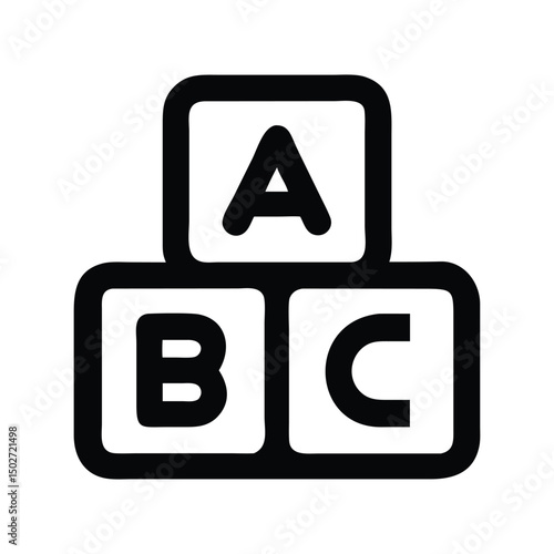 ABC block icon vector. Alphabet toy symbol for kids' apps, educational designs, or childhood-themed branding