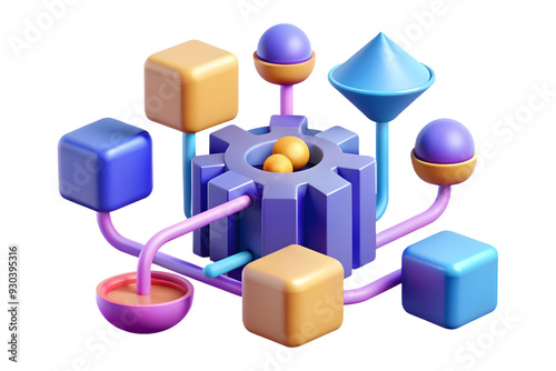 Abstract 3D AI Driven Data Flow Elements Concept: Dynamic Data Streams Through Geometric Shapes - Seamless Integration of AI in Data Processing. Isolated on White Background.
