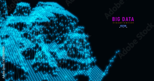 Abstract 3D big data visualization. Tangled graphics data streams. Infographics threads data. Futuristic Social network. Technological vector background. Representation of a business intelligence