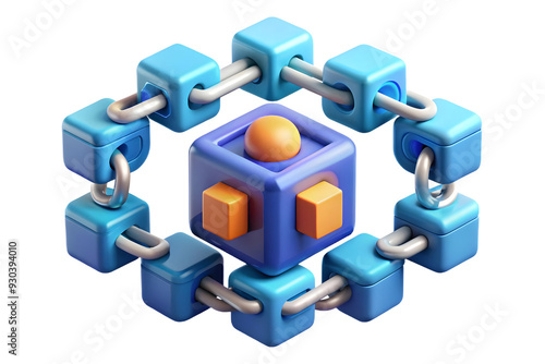 Abstract 3D Blockchain Elements Concept with AI Driven Security - Digital Blocks and Chains Design on White Background for Data Integrity and Technology Innovation