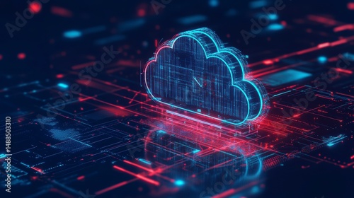 Abstract 3D cloud computing network data concept.