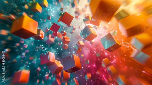 Abstract 3D cubes floating in space, creating a futuristic and dynamic visual effect. Generative AI