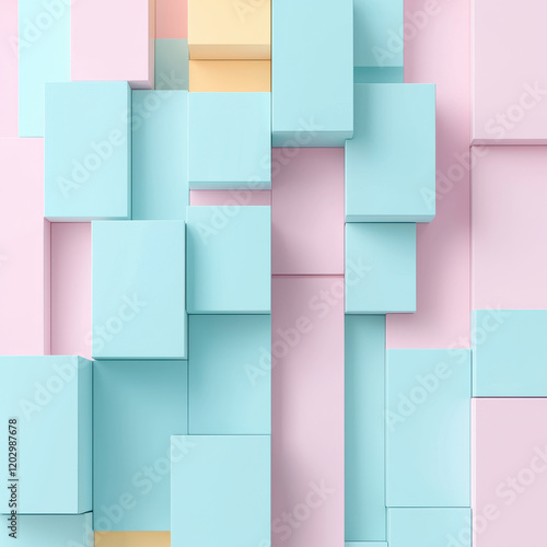Abstract 3D cubes in pastel colors arranged in geometric pattern, creating modern and playful design