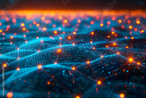 Abstract 3D Digital Network Background with Red and Orange Lights