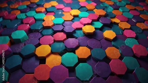Abstract 3D hexagon background, geometric patterns, dynamic light effects, immersive depth, high-quality rendering, ideal for modern and creative projects