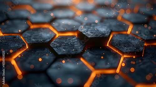 Abstract 3D Hexagon Pattern with Glowing Orange Lines