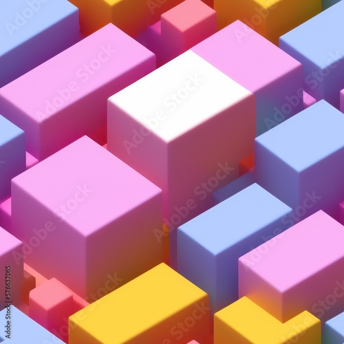 Abstract 3D isometric cube pattern background with a pastel color palette, generative ai