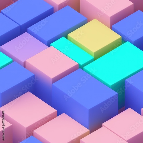 Abstract 3D isometric cube pattern background with a pastel color palette, generative ai