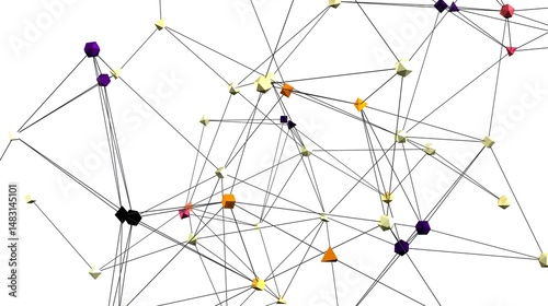 Abstract 3D rendering of a complex network. Ideal for technology, connection, and data visualization concepts.