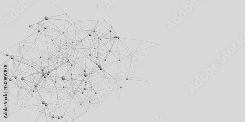 Abstract 3D rendering of a network graph. Ideal for tech, AI, or data concepts.