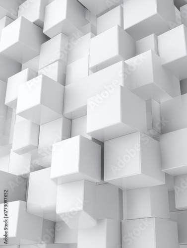 abstract 3d square white technology communication concept background. Random shifted white cube square boxes block background wallpaper banner with copy space.