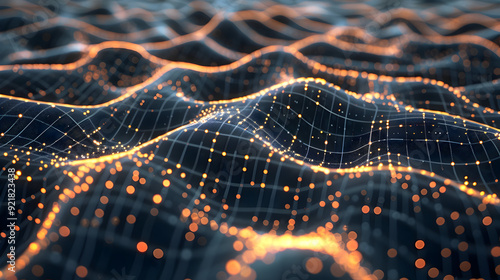 Abstract 3D Wavy Grid with Glowing Orange Lights Background