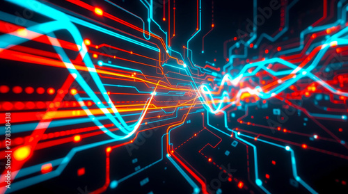 Abstract AI interface with holographic elements and glowing data lines – Generative AI