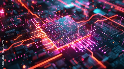Abstract AI Technology Render with Colorful Circuit Design