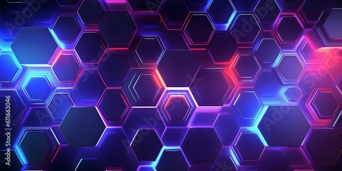 Abstract and Futuristic Hexagonal Background with Colorful and Glowing Neon Effect. Modern Technology Background. Generative AI