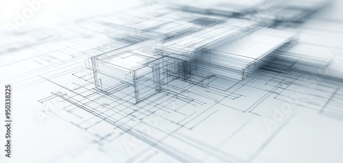Abstract architectural blueprint showcasing intricate lines and structures, ideal for design and engineering projects.