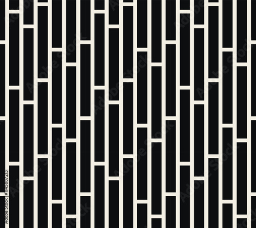 Abstract art black rectangle geometric seamless pattern. Vertical thick vertical stripe.