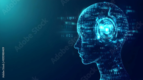 Abstract Artificial Intelligence Concept with Binary Code Forming Head