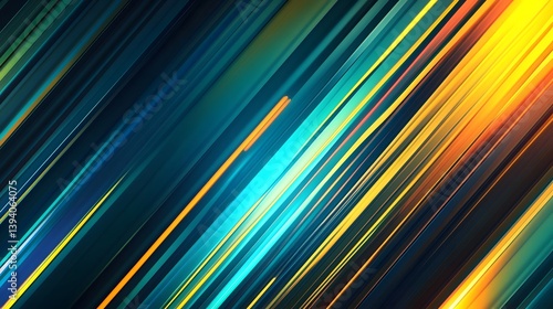 Abstract artwork featuring colored lines and gradients diagonally across the frame