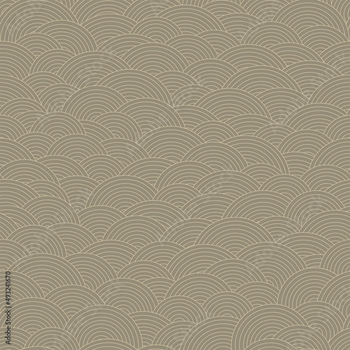Abstract asian styled fish scales seamless pattern. Vector geometric illustration with striped circles. Line art vector print for fabric, stationery, wrapping paper, any surface.