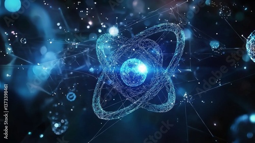 Abstract Atom Structure, Blue Glowing Digital Network Technology