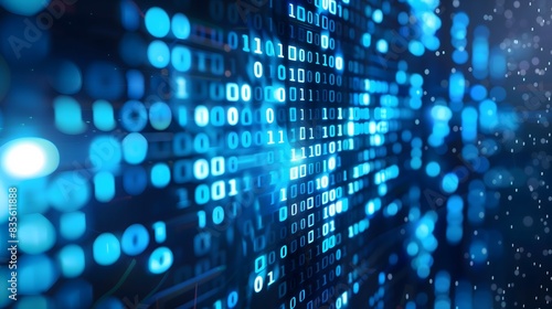 Abstract Background - Blue binary code streams glowing in a digital, abstract environment