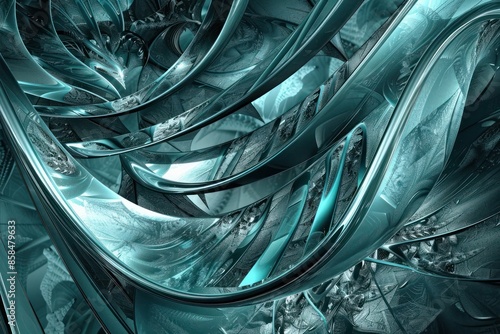 Abstract Background, a 3D abstract background featuring varied textures in deep aquamarine tones with reflective silver elements