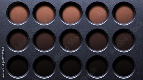 Abstract Background, Eighteen Circular Cutouts on a Dark Gray Surface