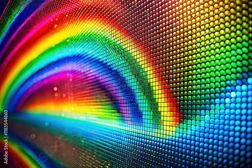 Abstract background featuring a distorted rainbow effect, deep depth of field, and a static screen texture.
