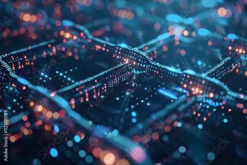 Abstract background featuring a network of interconnected dots and lines, creating a dynamic visual representation. Ledger entries within the blocks of a blockchain .