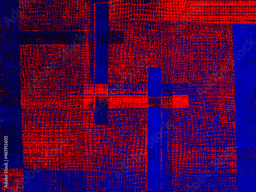Abstract background in red and blue, with a spectacular rhythm and inserts. Surreal image in a modern style. For your wallpapers, art projects and works.