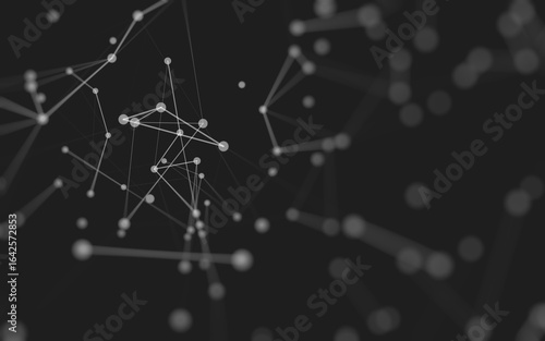 Abstract background. Molecules technology with polygonal shapes, connecting dots and lines. Connection structure. Big data visualization.