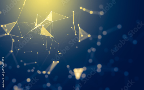 Abstract background. Molecules technology with polygonal shapes, connecting dots and lines. Connection structure. Big data visualization.