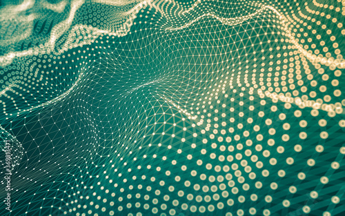 Abstract background. Molecules technology with polygonal shapes, connecting dots and lines. Connection structure. Big data visualization.