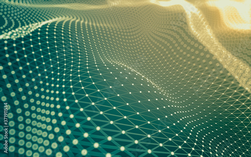 Abstract background. Molecules technology with polygonal shapes, connecting dots and lines. Connection structure. Big data visualization.