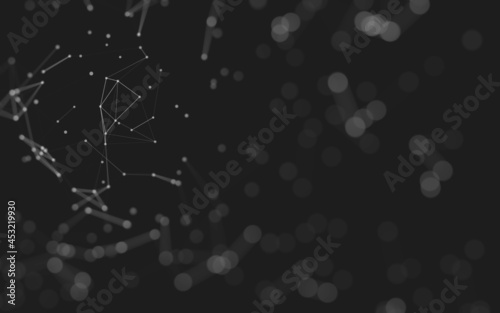 Abstract background. Molecules technology with polygonal shapes, connecting dots and lines. Connection structure. Big data visualization.