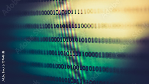 Abstract background of digital binary code of DEFI software. Crypto Programming software code on computer screen which develop by the programmer to solve the business requirement.