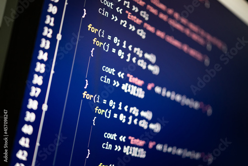 Abstract background of digital binary code of DEFI software. Crypto Programming software code on computer screen which develop by the programmer to solve the business requirement.
