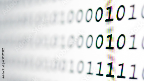 Abstract background of digital binary code of software. Programming software code on computer screen which develop by the programmer to solve the business requirement.