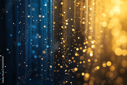 Abstract background of shimmering lights in blue and gold tones, creating a magical atmosphere.